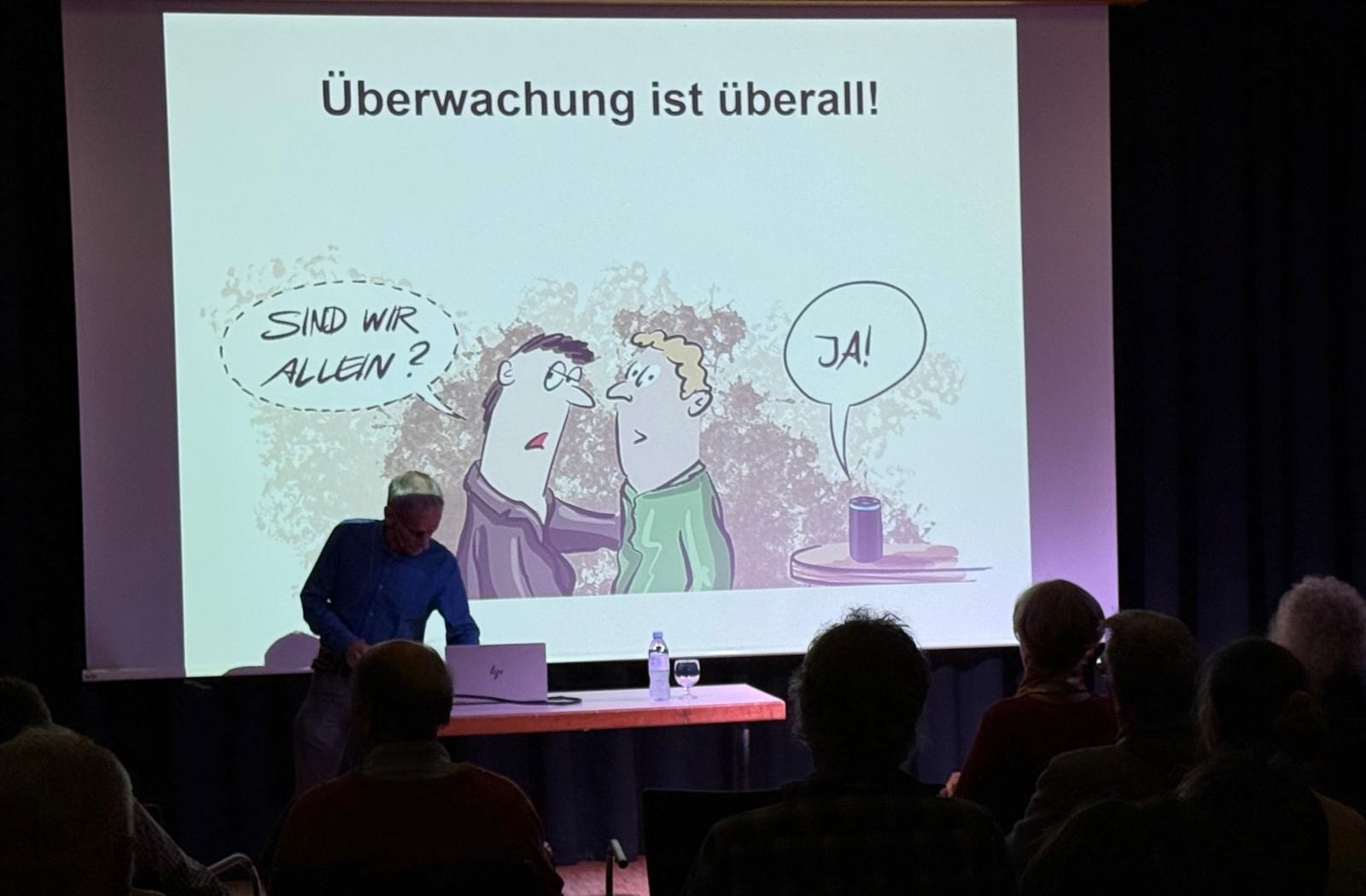 Der Vortrag regte zum Nachdenken an und machte deutlich, wie rasch Freiheit und Privatsphäre zugunsten von Sicherheit und Bequemlichkeit in den Hintergrund treten können.