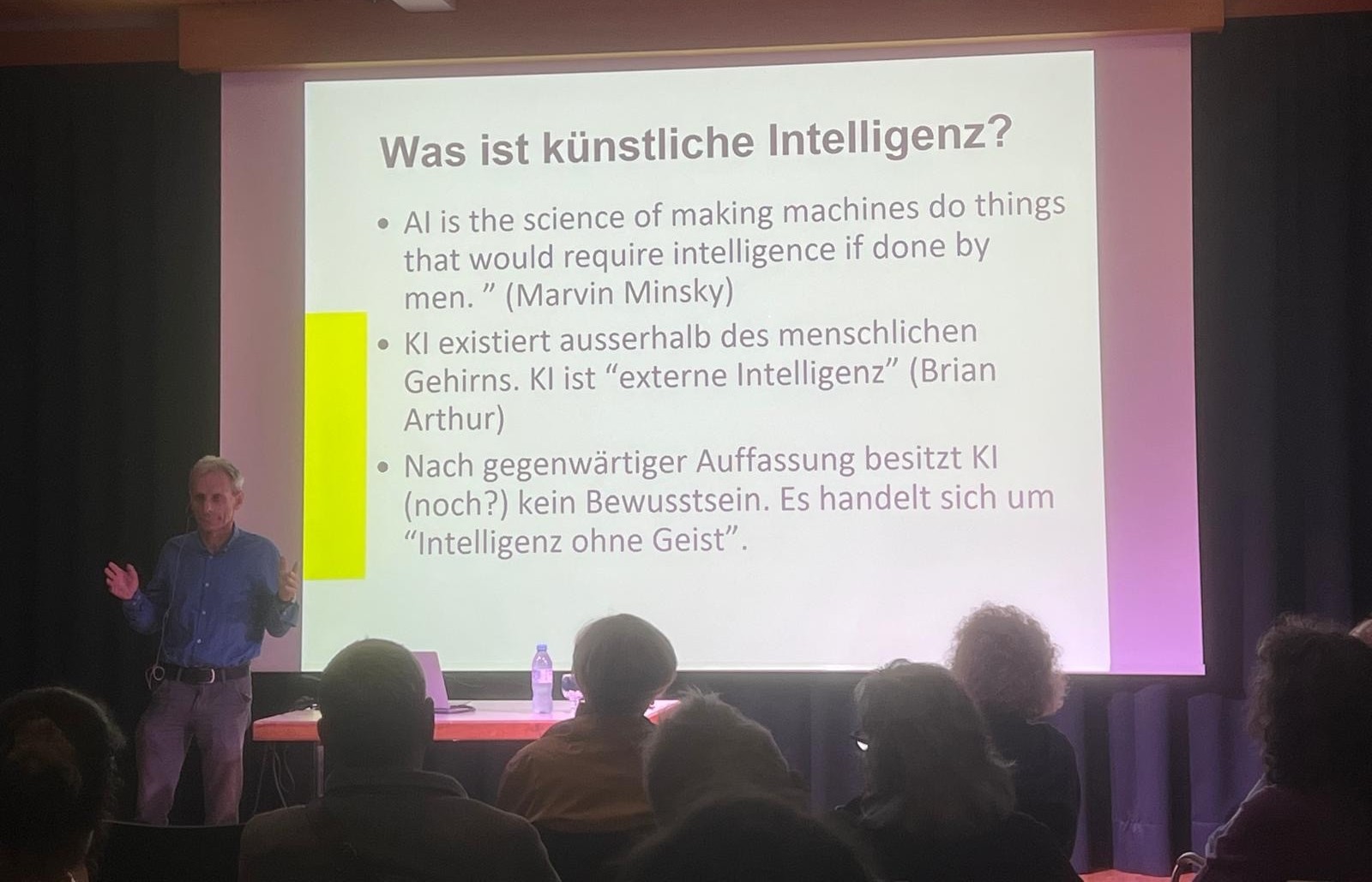 Thema Künstliche Intelligenz und erläuterte, welche Auswirkungen KI auf Wirtschaft und Gesellschaft haben kann.