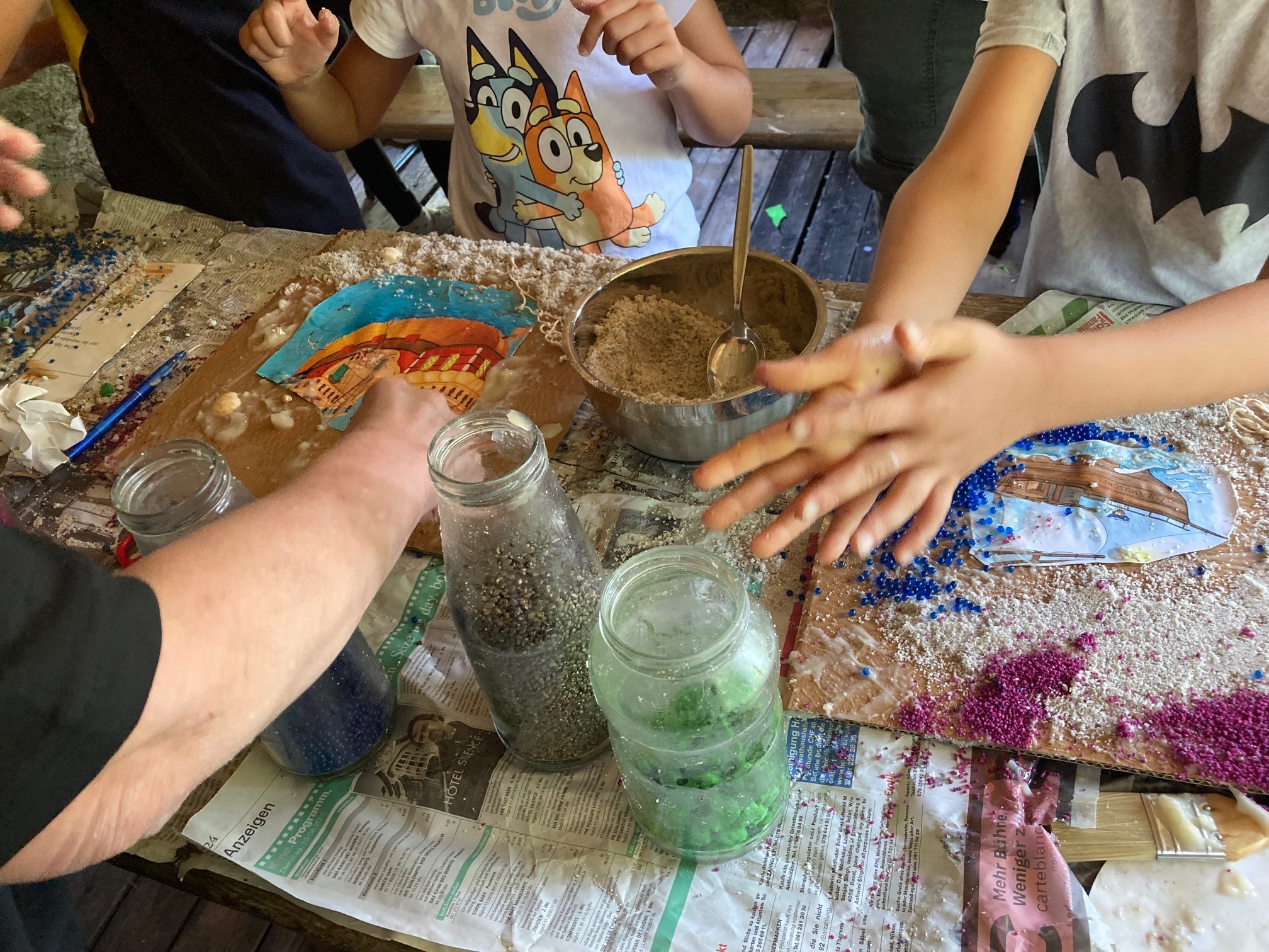Am Samstag, 23. August war auch die Gemeindebibliothek Therwil am Kinder- und Jugendtag «Därwil connäct» mit dabei! Es wurden hohe Bücherstapel gebaut, bunte Raupen gebastelt und farbenfrohe Sandbilder gestaltet. Ein grosser Spass und ein toller Tag für Kinder und ihre Familien!
